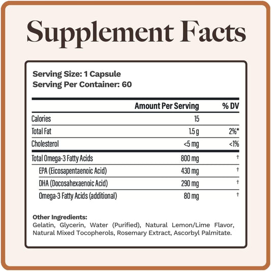 Utzy Naturals Omega 3 Fish Oil Softgels - 800mg EPA & DHA with Lemon-Lime Flavor - 60 Count