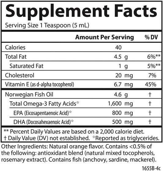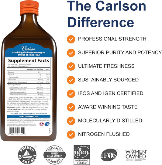 Carlson Very Finest Liquid Fish Oil Supplement, 1600 mg Omega-3s, Norwegian Wild-Caught Fish Oil, Orange Flavor, 16.9 Fl Oz