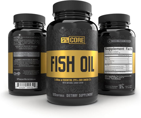 High Potency 5% Nutrition Core Fish Oil Supplement | 2,500 mg EPA DHA Omega 3 Fatty Acids | Burpless for Recovery, Joints, Heart | 60 Servings