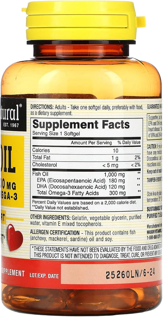Mason Natural Fish Oil Concentrate STG - 60 Count Dietary Supplement for Heart Health