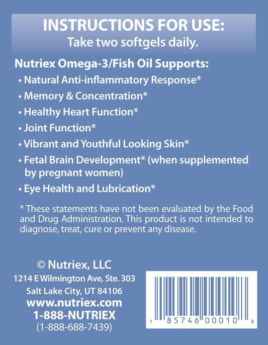 Nutriex Omega-3 Fish Oil Softgels - 120 Count Bottle