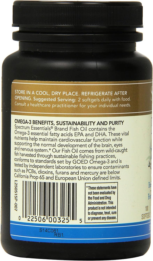 Spectrum Essentials Fish Oil Omega-3 Softgels, 1000mg, 100 Count - High-Quality Essential Fatty Acids