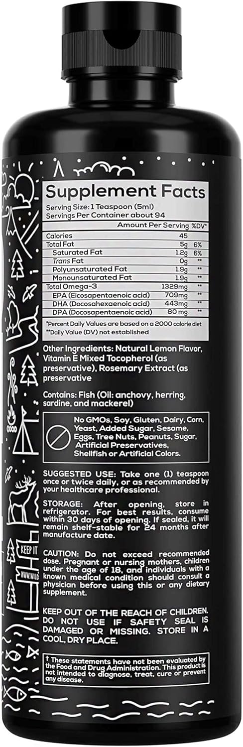 Wild Foods Lemon Liquid Omega 3 Fish Oil Supplement - 16 oz (1 pk) - Triple Strength Heart & Joint Nutrition - Non-GMO, Gluten Free - DPA, DHA, EPA for Women & Men