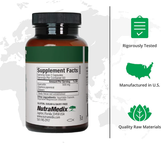 Quercetin 500mg Capsules for Heart Health and Immune Support - Antioxidant Supplement with Zinc and Vitamin C - 120 Vegetarian Capsules by NutraMedix