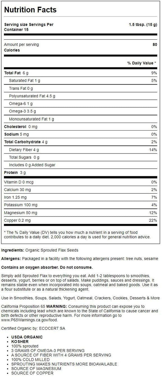 Organic Flax Seeds - USDA & EU Certified, Pesticides & Adulteration Free, Sodium Free - 7 oz Pack
