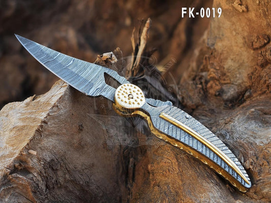 Damascus Hunting Pocket Knife for Men with Leather Sheath - Everyday Carry Tactical OTF Knife - Shiny Crafts FK 15