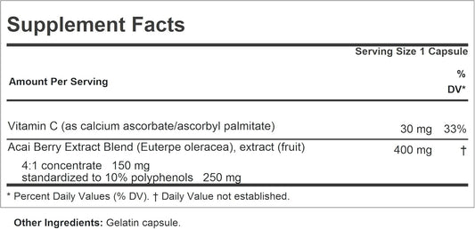 High-Potency Ultimate Açai Berry Extract Capsules - Rich in Antioxidants, Standardized Formula with Protective Compounds, 30 Capsules, No Additives