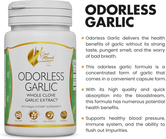 Cocó March N.M.D Odorless Garlic Oil - Immune & Microbiome Support, Gluten-Free, Dairy-Free, Paleo & Keto Friendly - 50 ServingsVendor:Cocó March N.M.DRegular price $107.29 AUDRegular priceUnit price / per-