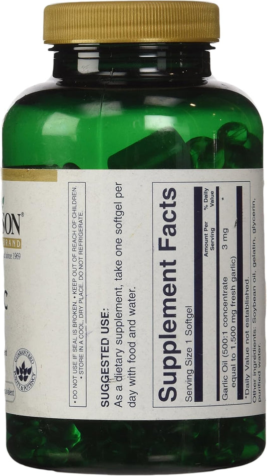 Swanson Garlic Oil Softgels, 500mg, 250 Count - High-Quality Supplement