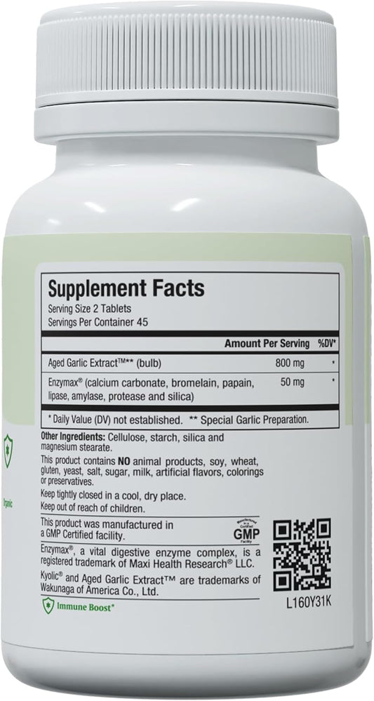 Organic Kyolic Aged Garlic Extract Tablets for Immune Support - Vegetarian Supplement with Kosher Garlic (90 Count)