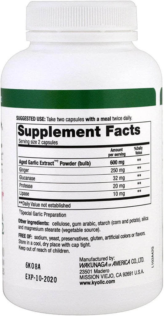 Kyolic Garlic Extract with Lecithin 200 Capsules - Heart Health Support