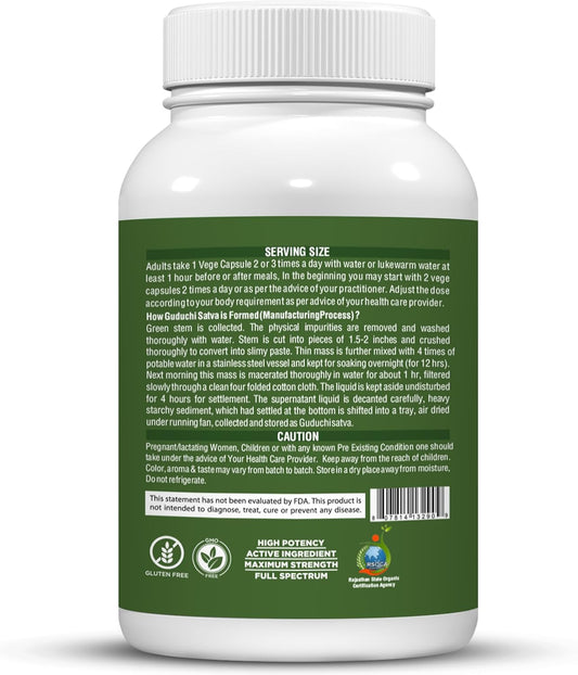 Natural Digestive Support Guduchi Sat Capsules - 90 Vegetarian Capsules, 800mg - Balances Vata and Pitta