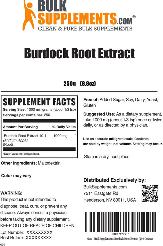 BulkSupplements.com Burdock Root Extract Powder - Herbal Supplement, Gluten Free, 1000mg per Serving, 250g - Pack of 1