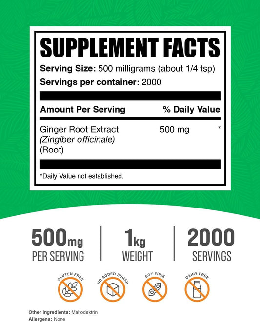 BulkSupplements.com Organic Ginger Root Extract Powder - Herbal Supplement, Gluten Free, 500mg per Serving, 1kg (2.2 lbs)