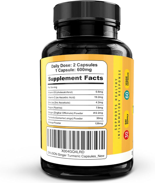 Ginger Turmeric Supplements with Vitamin D3, C, Pepper, Zinc & Orange - Supports Joint, Gut, and Skin Health
