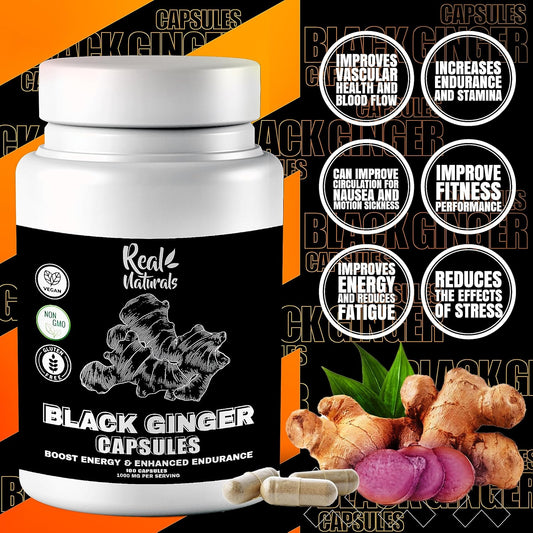 Vegan Black Ginger Extract Capsules for Men - 500mg (100 Capsules) - Boost Endurance and Performance