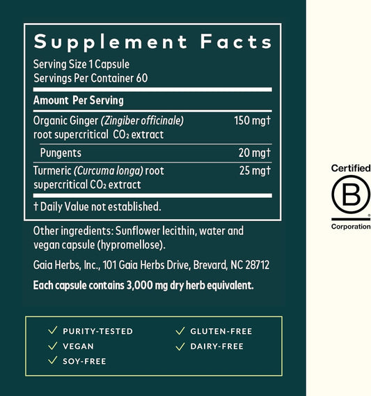 Organic Ginger and Turmeric Root Supplement for Digestive Health - 60 Vegan Liquid Capsules