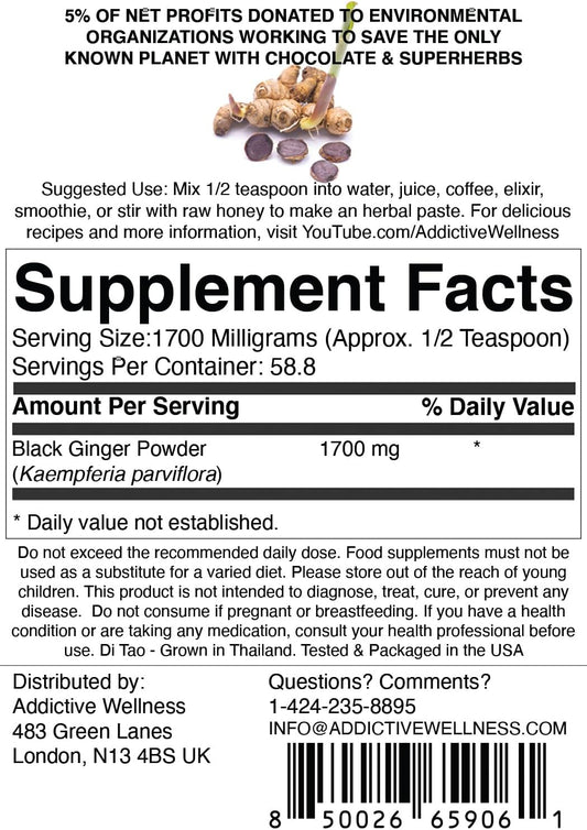 100g Addictive Wellness Thai Black Ginger Supplement for Men - Boost Energy, Metabolism, Endurance, Performance - Vegan/Paleo - Freeze Dried Powder
