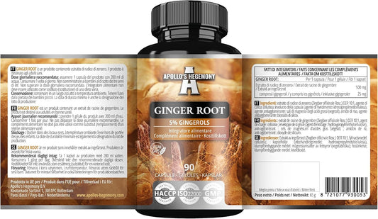High Strength Ginger Root Extract Capsules - 500mg, 5% Gingerols, 90 Vegan Capsules - Digestive Comfort & Immune Support - 3 Month Supply