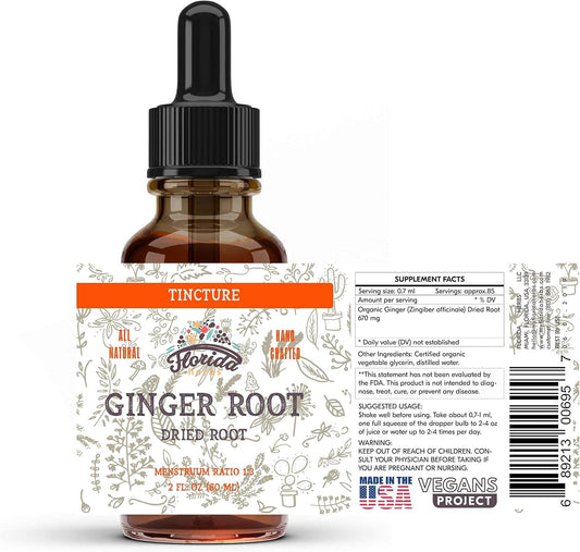 Organic Ginger Extract Tincture from Florida Herbs - USA Sourced Ginger Supplement