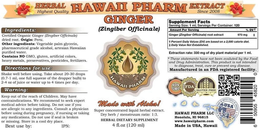 Organic Ginger Liquid Extract Tincture Supplement 2 oz by Hawaii Pharm