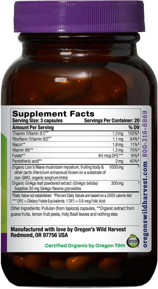 Organic Lion's Mane Plus Brain & Memory Support Supplement with Vitamins & Ginkgo, 60 Count by Oregon's Wild Harvest