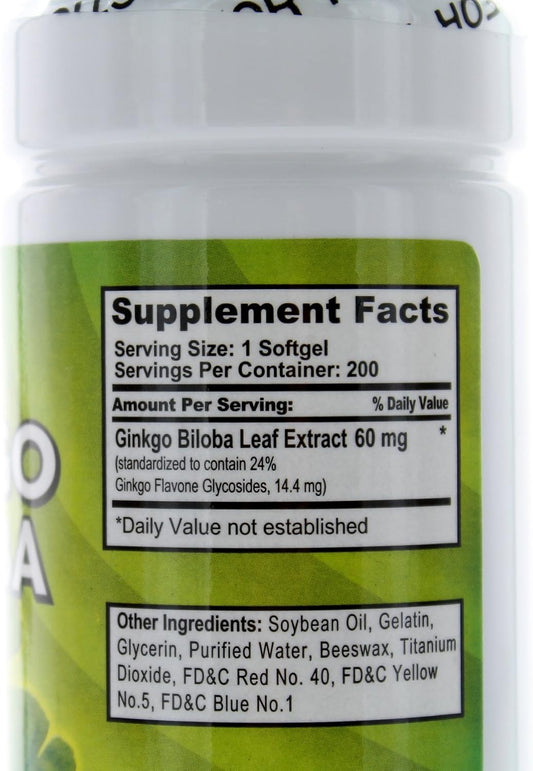 Nu-Health Ginkgo Biloba Softgels - 60 Mg, 200 Count - Natural Brain Support Supplement