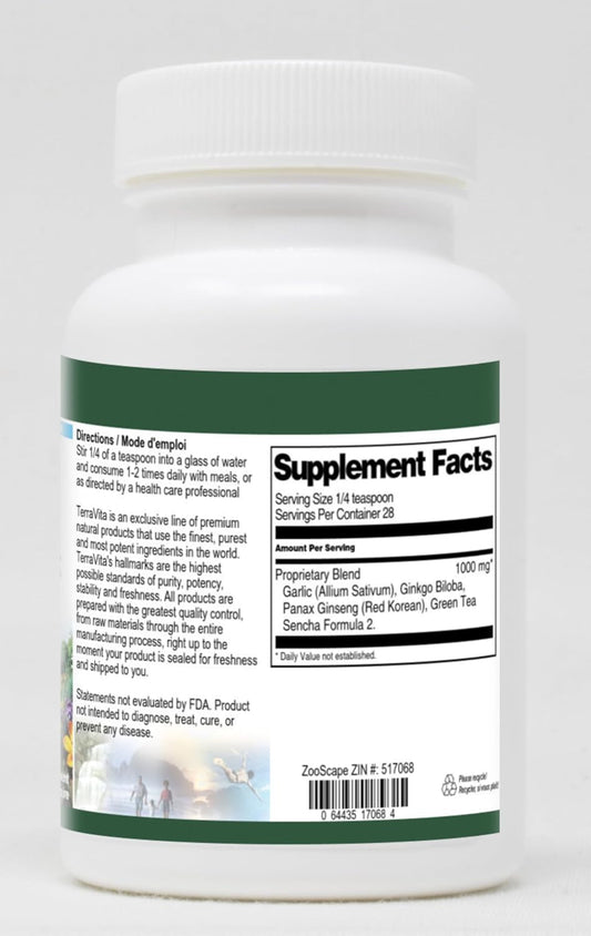 Terravita Ginseng, Green Tea, Ginkgo, and Garlic Complex Powder - 1 oz - ZIN 517068