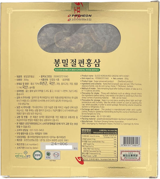 300g Pocheon Korean Red Ginseng Slices with Honey for Natural Immune Support - 6-Year Panax Red Ginseng Slice with Saponin