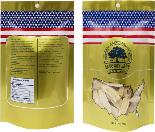 Wisconsin-Grown DABC OAK LAND DOL American Ginseng Slices for Making Ginseng Tea - Small 4oz Bag - Health Benefits