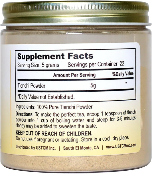 USTCM 100% Pure Tienchi Powder - Notoginseng Sanqi Ginseng Powder 4oz 120mesh - Authentic Pseudoginseng Root Powder