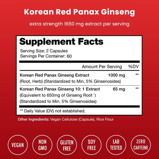 Korean Red Ginseng Extract Everytime 2000mg for Energy Boost & Immune Support - 20 Count Pack - Caffeine-Free Ginseng Supplement