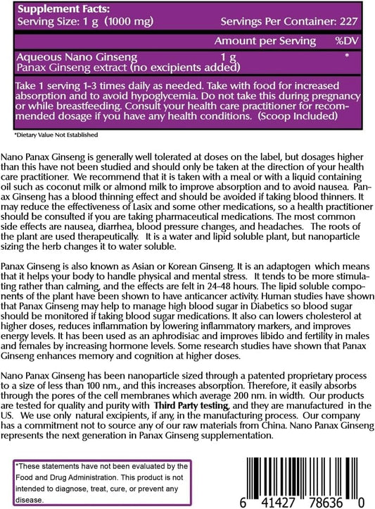 Nano Panax Ginseng Powder - Korean Extract for Energy & Stamina - 8 oz (227 Servings) - Non-GMO, Vegan, Gluten Free - Enhanced Absorption Formula