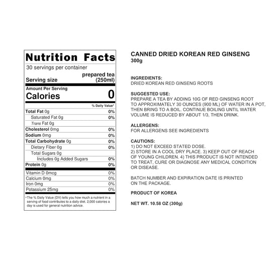 Pocheon Korean Red Ginseng 300g Canned Dried Panax 6 Years Cut Grade 300-Small Roots for Natural Immune Support