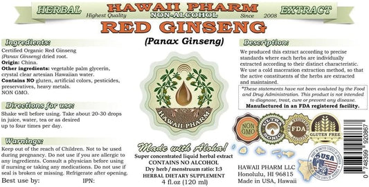 Organic Red Ginseng Alcohol-Free Liquid Extract - Panax Ginseng Root Glycerite Supplement - Hawaii Pharm USA - 2x4 fl.oz