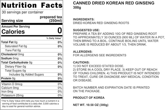 300g POCHEON Korean Red Ginseng Canned Dried Panax - 19 Roots, 6 Years, Grade 300-30, Immune Support