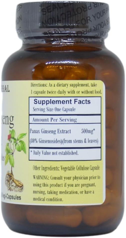 Panax Ginseng Extract Capsules - 80% Ginsenosides for Stamina, Focus, and Vitality - 60 VegiCaps - 500mg Per Capsule - Glass Bottled
