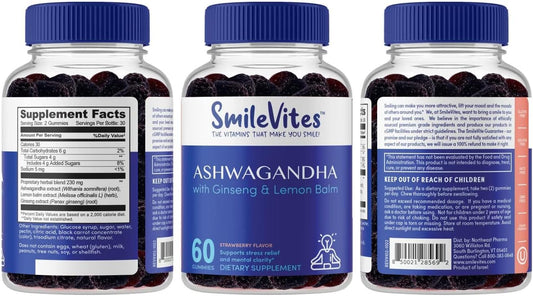 Premium Quality Strawberry Flavored Ashwagandha Gummies for Stress Relief, Energy Boost, Sleep Support, Cognitive Function, and Antioxidant Protection - 60 Count