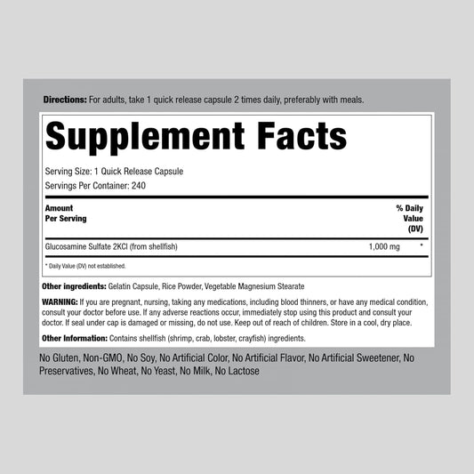Glucosamine Sulfate 1000mg Capsules Supplement | Non-GMO, Gluten Free | Made in USA | 240 Count