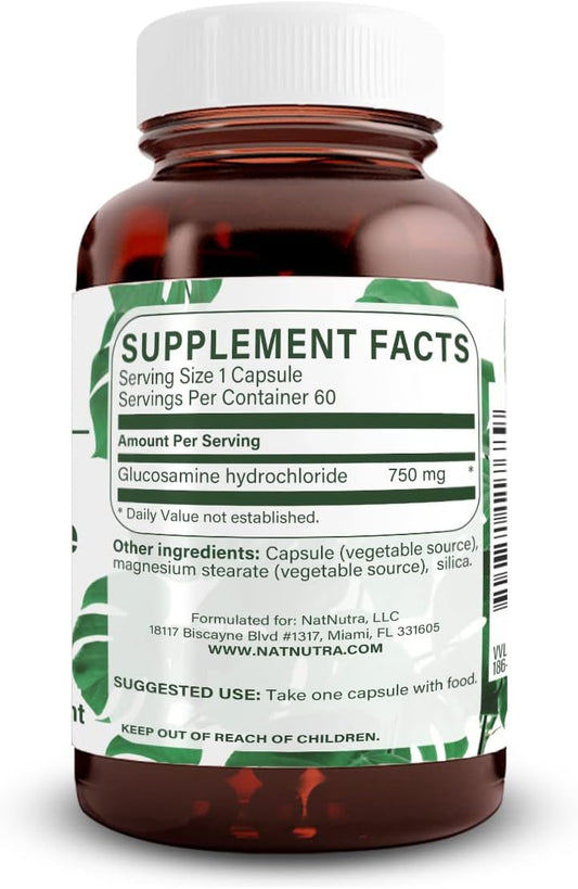 Plant Based Glucosamine Hydrochloride Supplement for Joint Health, Vegan & Vegetarian, Kosher, Shellfish Free, Muscle & Joint Support, 750mg - 60 Capsules