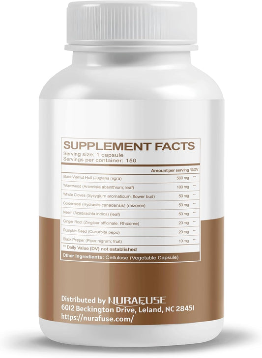 Antioxidant-Rich Digestive Health Supplement with NURAFUSE Black Walnut, Wormwood, Cloves, and Goldenseal - Made and Tested in the USA