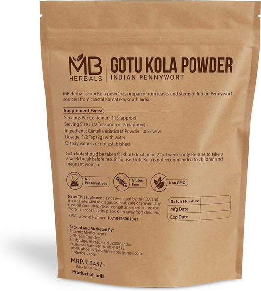 MB Herbals Gotu Kola Powder 227 Gram (0.5 lb / 8 oz) | Centella asiatica | Mandukaparni | Hair Care | Promotes Hair Growth