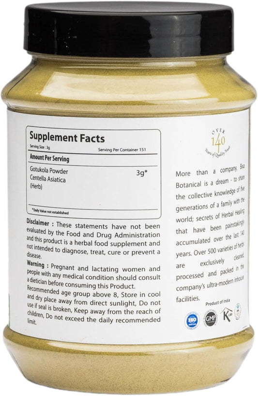Premium Quality Gotu Kola Powder Supplement for Improved Overall Health - Ayurvedic Herbal Centella Asiatica - 16 Ounce Pack