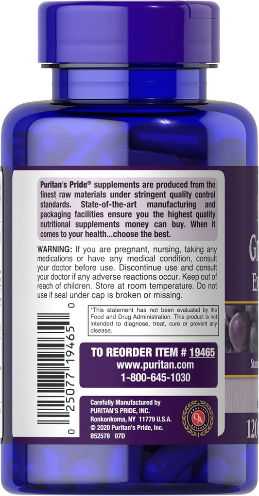 120 Count Puritan's Pride Grapeseed Extract 200 Mg Capsules - Pack of 240