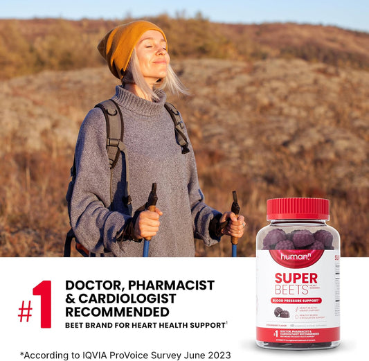 SuperBeets Strawberry Heart Gummies with Beetroot & Grape Seed Extract - 60 Count