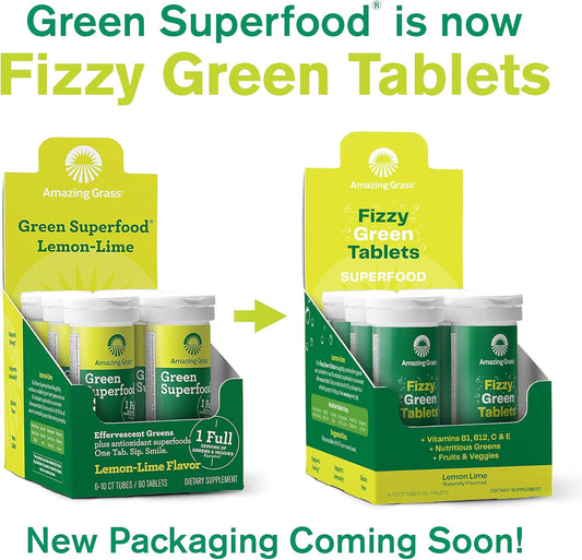 Amazing Grass Fizzy Green Tablets Lemon Lime 60 Count: Antioxidant & Alkalizing Greens Water Flavoring Tablet