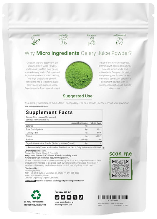 Organic Celery Juice Powder - 20oz (1.25lb) - Detox, Immune Boost, Gut Health - Vegan - Rich in Vitamin C & MineralsVendor:Micro IngredientsRegular price $143.88 AUDRegular priceUnit price / per-