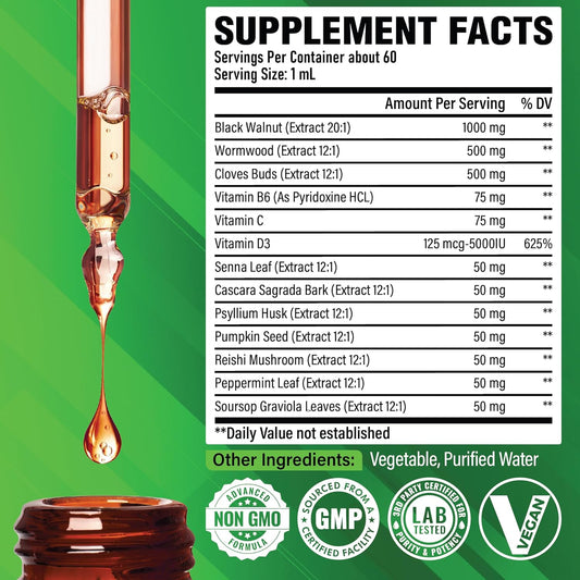 Satoomi 13-in-1 Black Walnut Liquid Drops with Vitamins and Herbs - 2 Fl Oz - Berry Mix Flavor - 60 Day SupplyVendor:SatoomiRegular price $112.21 AUDRegular priceUnit price / per-