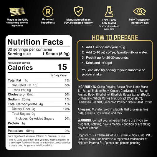 Superfood Mushroom Coffee Enhancer - Lion's Mane, Rhodiola, Cordyceps, Cacao - Caffeine & Sugar Free - 30 ServingsVendor:mindrightRegular price $171.47 AUDRegular priceUnit price / per-