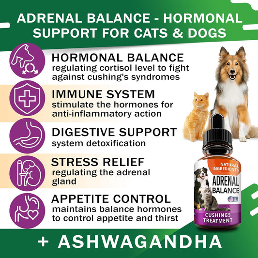 Adrenal Balance Herbal Drops for Dogs and Cats - Natural Cushings Treatment with Ashwagandha, Licorice Root, Rhodiola Rosea - 2oz